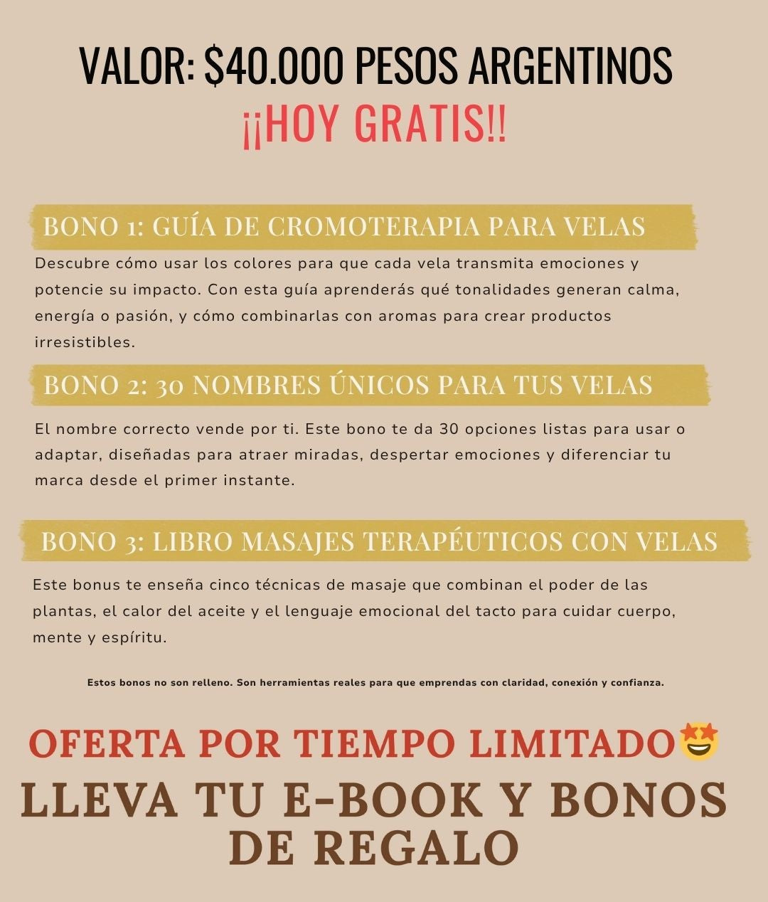 Si en ese tiempo sientes que no aprendiste nada nuevo, que no te ves creando tus velas o que la guía no cumplió con lo prometido, me escribes y te devuelvo tu dinero, sin preguntas incómodas.